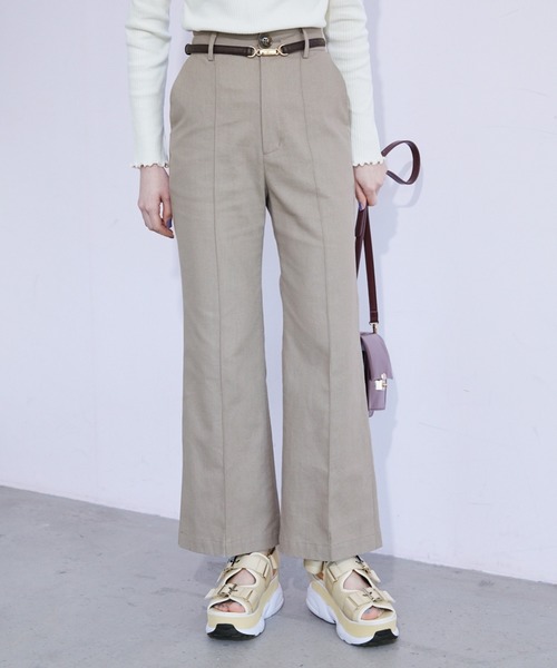 【デザイン】 人気のスラックスデザイン!太もも部分はスッキリ♪ひざ下はフレアに! 膝から裾に向かって緩やかに広がるシルエットは脚を細長く見せてくれます★ 【素材】 綿・麻の自然素材を使用しこれからの季節に涼しく着られちゃうアイテム 通気性が良く、汲水・吸湿性がいいので汗をかいても安心です! 【スタイリング】 ビッグシルエットのトップス合わせは相性抜群! タイトなトップスにベルトをONすればレディライクな着こなしも叶っちゃう♪ ※屋外の光や照明の当たり具合で、実際の商品と画像の色味に違いが発生する場合がございます。