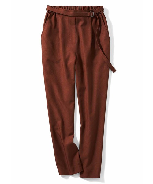 イージーケア素材と美脚シルエットで、麻調パンツをもっとらくにおしゃれっぽく。 麻調のポリエステルにリネンをブレンドしたさらりとした肌ざわりの素材は、しわになりにくいイージーケアが魅力。ウエストゴムのらくちん仕様ながら、太すぎず細すぎないテーパードラインが美脚をかなえ、長いベルトで着映え感もたっぷり。 Sサイズなどの小さいサイズからXLなどぽっちゃりさんのための大きいサイズまで幅広いサイズ展開も魅力的。