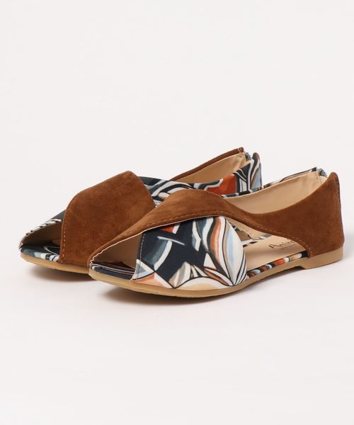 レトロな柄と無地との切り替えが個性的なオープントゥパンプス。キレイなカーブ・曲線で、足元をグーンと大人っぽく華やかにしてくれます。バックファスナーで着脱が楽なのも嬉しいポイントです。 ※こちらの商品は1点1点職人による手作りとなります。その為、生地の取り方により柄の配置や形・色合いなど若干異なる場合がございます。(画像は一例です。)あらかじめご了承ください。※屋外での撮影画像は、光の当たり具合で色味・カラーが違って見える場合がございます。商品のカラーは、スタジオ撮影の画像をご参照ください。 ※サイズには個人差がございます。あくまで目安にお考えくださいませ。 Amina Collection Co.,LTD.