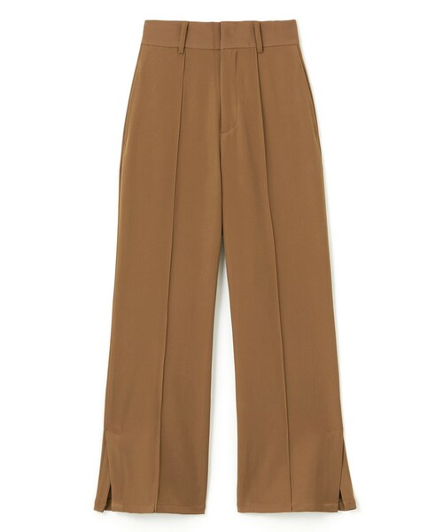 センターのピンタックが縦の線を強調し、脚長効果抜群のパンツ。 控えめにフレアになったシルエットが、トレンドを抑えつつコーデにも取り入れやすい。 サイドベンツから足首が覗き、軽やかな印象に導く。 カジュアルから綺麗めまで、幅広いテイストのコーディネートに大活躍間違いなし。 ワンカラーのシンプルなルックスでオンオフ問わず使える優れもの。 ★バックウエストゴム入りです。 ★ポケット付きです。