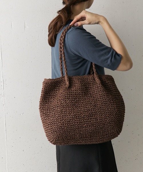 人気のペーパープレーンバッグが今年も入荷。軽くて柔らかい素材感は夏のコーディネートにマッチし、合わせるだけで涼し気な印象に。裏地に布帛を貼ることで中身の飛び出しや形崩れを防ぎます。嬉しい内ポケット付き。※A4サイズ収納可能※この商品は、摩擦や汗、雨などの使用条件等により、色落ちや他の物への色移りの可能性がございますのでご注意ください。※この商品は、仕立て素材がデリケートなため破損の恐れがあります。お取り扱いにはご注意ください。※その他お取り扱いに関しましては、商品に付属のアテンションタグをご覧ください。総重量 : 約250g