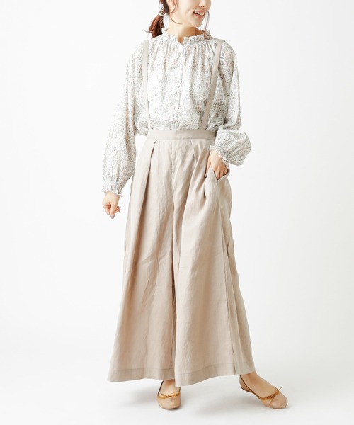 ピュアルセシン 2020 Spring collection “graceful nature” サスティナブルからくる地球や環境をいたわる時代の中、植物や花たちが生い茂る庭園をイメージ ◇ふんわりシルエットが大人可愛いサスペンダーパンツ◇ スカート見えするほどふんわりとしたワイドパンツが、子供っぽくなることなく着こなせるサスペンダーパンツ。 サスペンダーは調節可能になっているため低身長~高身長の方まで幅広く着ていただけます。 トップスをTシャツやブラウスなど変えれば、カジュアルからフェミニンまで様々なコーディネートが楽しめます。 ・ふんわりシルエットの大人可愛いサスペンダーパンツ ・麻混じりの生地は夏まで着られる軽めの素材 ・サスペンダーは3段階調節可能!取り外してワイドパンツとしても◎ ・ブラウスやTシャツなどトップスを変えればロングシーズン活躍してくれます ※撮影場所やお使いのモニター環境により若干お色味が異なる場合がございます。特にロケの撮影では明るく見える傾向にございます。 ※予約商品はサンプルで撮影をしております。若干の仕様が変更になる場合がございますので予めご了承の上ご注文くださいますようお願いいたします。