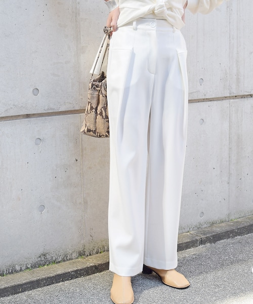 ◆アイテム詳細◆ -MADE IN JAPAN- 大人気のツイルタックポケットPTの春夏カラーが登場!! センターのタックで大きくとったポケットがポイントで、気取り過ぎない大人カジュアルなコーディネートを演出してくれます。 柔らかで高級感あるツイル素材で、着心地も良くハイウエストデザインが、コンパクトなTOPSをインしてすっきり着こなすのがおすすめ。 ーーーーーーーーーーーーーーーーーーーーーー 【セレクト】GALENA 【COLOR】ホワイト・ベージュ・ラベンダー・ターコイズグリーン 【SIZE】38サイズ 平置き(㎝) 着丈100 ウエスト32-37(後ゴム使用) 裾幅23 【素材】本体 ポリエステル100%