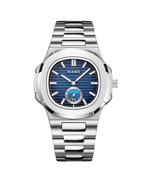 パテックフィリップ ノーチラスをオマージュしたPLADENブランドのクォーツ腕時計。 こちらはシルバーモデルになります。 ノーチラスに似ている腕時計をお求めの方、気軽に高級感のあるデザインを楽しみたい方にはぴったりな一本です。 ブランド:PLADEN ムーブメント:日本製クォーツムーブ ケース直径:44mm ケース厚:10mm バンド幅:22mm バンド長さ:25.5cm ケース素材:ステンレススチール バンド素材:ステンレススチール/レザー 風防:ハードレックス 防水性能:30m(シャワー、水泳には不対応) 〜お届け目安について〜 こちらの商品は海外倉庫からの発送となるため、お届けまでに出荷後約3~4週間ほどお時間がかかります。(通関・物流状況により、これより前後する場合があります。)配送状況に関しましては、発送時に通知する追跡番号、追跡用URLにてご確認頂けます。 PLADENシリーズ一覧はこちら ↓ https://netshop-p1.shop/?category_id=5e6e2777e20b0476369a5644 管理番号:82