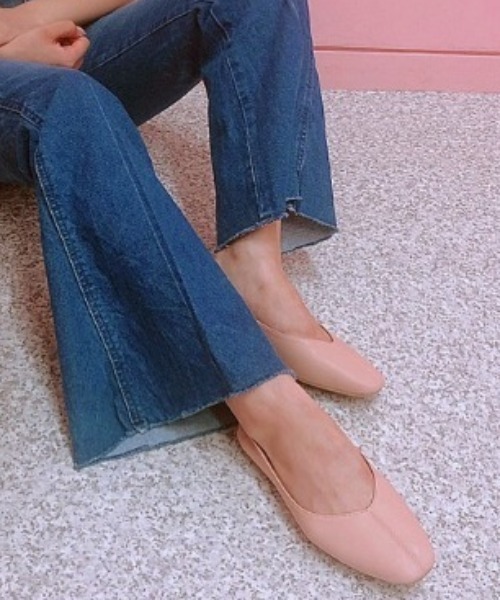 旬なスクエアトゥのフォルムにVカットの履き口がすっきりとした印象のフラットシューズ。柔らかな素材は足馴染みが良く、歩行時もラクチン♪幅広いコーデ取り入れやすく、さくっと履ける便利アイテム。シーズン問わずデイリーに使える一品です。★スタッフH★【通常サイズ】23.0-23.5㎝(Mサイズ)とても軽いです。通常のMサイズでちょうどよかったです。かかと部分のゴムが歩くときにパカパカせず、かかとにしっかりついてきます。★スタッフS★【通常サイズ】24.0㎝(Lサイズ)秋バージョンを購入し、履きやすかったので、今季の新色アイボリーもgetしました。何色も集めたいほど履きやすくてオススメです。※足の形によって個人差がございます。あくまでも目安ですのでお気をつけ下さいませ。