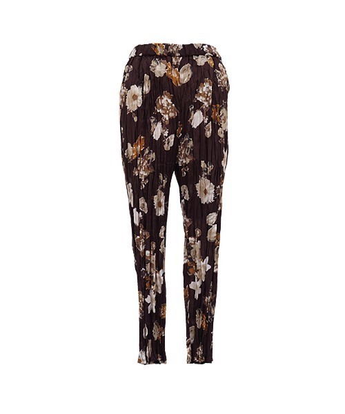 落ち着きのあるフラワープリント柄が印象的な レギンスパンツです。ワッシャー加工を施した ことで細見のシルエットがより強調された デザインに仕上がっています。サラッとした 着心地でレイヤードスタイルにお勧めの1枚です。
