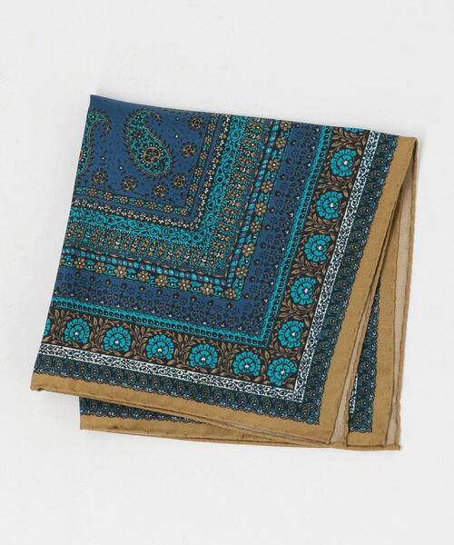 シルク素材を使用した、ペイズリー柄のポケットチーフです。 店舗へお問い合わせの際は、全国のgreen label relaxing各店舗まで下記の品名/品番をお申し付け下さい。 品名:ART PSLY PCF 品番:3145-699-0355