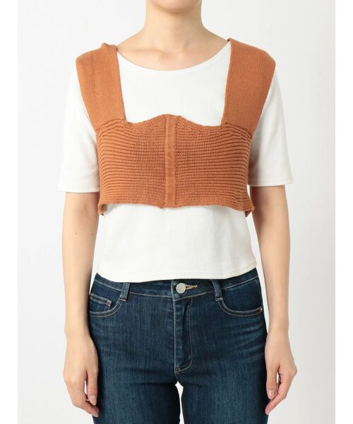 ◆バックシルエットがポイント◆ワイドショルダーのニットビスチェです。ショルダー部分は、背中でクロスさせてから後ろ身頃のスラッシュ(切り込みの穴)に通して垂らして着用して下さい。普段のスタイリングに取り入れるだけで、コーディネートがグッとワンランクアップしますよ♪※画像の商品はサンプルです。実際の商品と色味、仕様、加工、サイズ、素材等が若干異なる場合がございます。----------------透け感:なし生地の厚さ:普通裏地:なし伸縮性:あり付属品:なし----------------