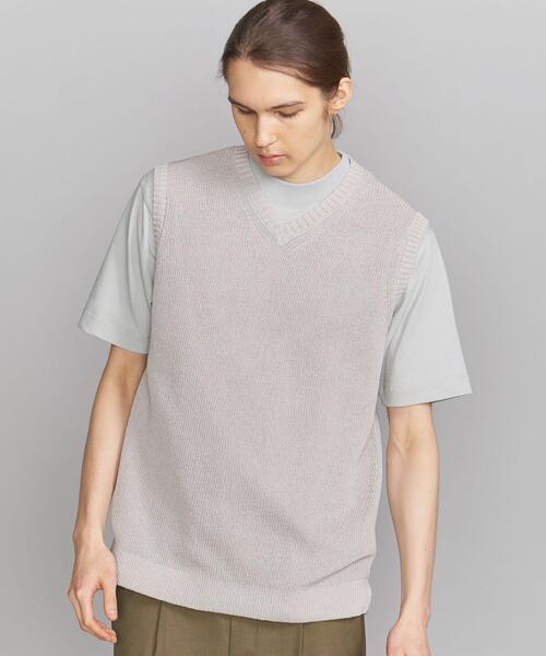 ■クルーネックのTシャツに合わせやすい絶妙な深さのVネックベスト■ ドライタッチと軽さが特徴のストローコットンを採用。 ざっくりした感じもありますが軽い着用感に仕上がっています。 程よいゆとりのあるシルエット。 カジュアルな質感のTシャツと相性が良い一着。 こちらの商品はご自宅での手洗いが可能です。 店舗へお問い合わせの際は、全国のBEAUTY & YOUTH各店舗まで下記の品名/品番をお申し付け下さい。 品名:SC STRAW/CTN AZE VEST 品番:1218-105-0317