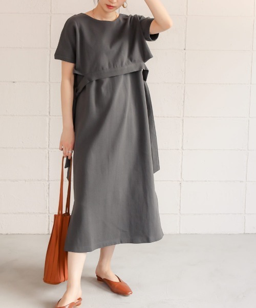 ◆Bab(バブ)◆レイヤード風のデザインが大人っぽいワンピーストップスを重ねて着ているようなデザインのレイヤード(重ね着)ワンピース。ネックのところでつながっているので、ボディ部分はノースリーブのワンピース、トップス部分は半袖のサイドリボントップスになっています。程よい厚みのあるカットソー素材で、からだのあたりが出にくく1枚で着こなしが完成するのもうれしいポイント。コットンの柔らかな触感が、ストレスフリーで着ていただけます。切り替え部分が高い位置にあるので、腰高に見えスタイルアップも叶います。生地の厚さ:★★★☆☆伸縮性:★★☆☆☆透け感:★☆☆☆☆(オフホワイトは若干透ける可能性があります)裏地:なしポケット:なし※撮影環境により、多少実際のカラーと異なる場合がございます。
