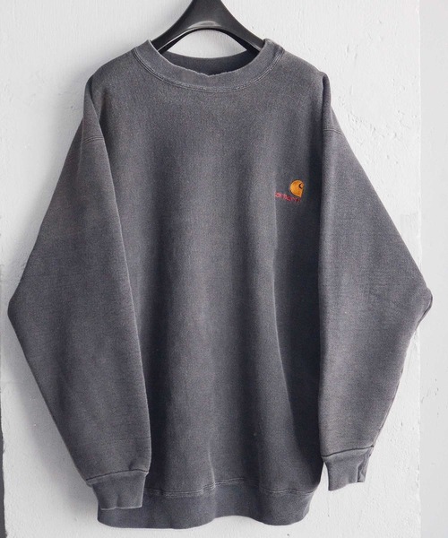 Carhartt ロゴクルーネックスウェット。ブラックボディに胸元はロゴ刺繍。 シンプルなデザインがとても魅力的な一枚。 厚みのあるヘヴィオンス。 着回しも効くアイテムです。 サイズは実寸XL位。 素材はおそらくコットンです。 状態:着用感,毛玉,毛羽立ち,色褪せ ーーーーーーーーーーーーーーーーーーーーーーーーーーーーーーーーーーーーーーーーーーーーーーーーーー こちらはヴィンテージ商品のため1点ものです。 交換・修理はいたしかねます。またヴィンテージ商品につき、どちらの商品にもシミ・ダメージ・使用感が多少ございます。このようなヴィンテージ商品の性質を十分ご理解いただいた上で、ご注文くださいますようお願いいたします。 商品状態につきましては詳細にお伝えするよう努めておりますが、細かな点の表記には限りがございます。また、画像につきましても、実商品の色味に近しいものを掲載するよう心がけておりますが屋内での撮影のため、多少の誤差が生じる場合がございます。どうかご理解いただけますようお願いいたします。 ーーーーーーーーーーーーーーーーーーーーーーーーーーーーーーーーーーーーーーーーーーーーーーーーーー