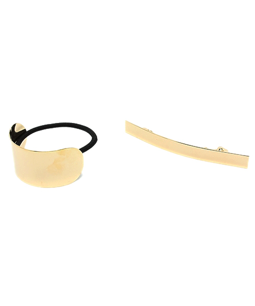 Kastane(カスタネ)ゴムにプレートが付いたデザイン。同じカラーの細いバレッタもセットになっています。ヘアアレンジの幅が広がるアイテムです♪