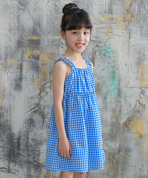 ガーゼ素材の様な柔らか素材でゆったりしていて着心地抜群。 ギンガムチェックが爽やかな印象のワンピース♪