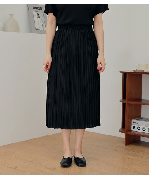 柔らかい感触の素材で快適な着用感を与え、優れた吸水性で不便なく着用できます。ほのかな光沢感&プリーツディテールでポイントをプラス!歩く度に魅力的なシルエットを演出します。ウエストゴムで腹部をカバーし、ロングな着丈感で下半身をカバー!これからの季節にピッタリな全5カラー展開です。