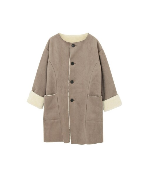 このアイテムは予約商品です●お届け予定時期:2014年9月下旬●予約受付期間:限定数に達し次第終了※工場の生産の都合上、納期が変更になる場合がございます。発送日の前後については予めご了承ください。※画像の商品はサンプルです。実際の商品と仕様、加工、サイズが若干異なる場合がございます。※納期の異なる予約商品、その他ブランドの予約商品、通常商品との同時決済はできません。※予約アイテムのキャンセルはご遠慮ください。※今回は受付数量に限りがございます。限定数に達し次第、ご予約は締め切らせていただきますので予めご了承願います。毎年大人気のフェイクムートンコートが今年はノーカラーに変わって登場!軽く折り返せる袖はコーデのアクセントに。襟ぐりまで締められるスッキリした首元はネックアイテムを合わせてもゴワつかず可愛く着られるデザインになりました。ゆったりめのシルエットですが広がり過ぎないので大人っぽいスタイリングにも大活躍。裏全体のボアで防寒対策もバッチリのアウターは寒くなる季節に押さえておきたいマストアイテムですよ♪※ 詳しい洗濯方法については、商品の品質表示タグをご覧ください