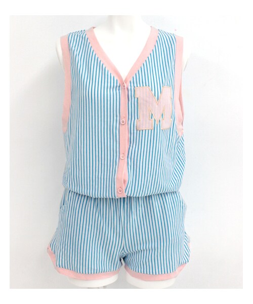 1枚で可愛い楽チンなロンパース☆+ストライプ×配色がベースボールシャツ風なデザイン♪さらっと着れるので今季にピッタリなIETMです!※こちらの商品は生地のデザイン上、実際の商品と画像とで柄の配置が異なる場合がございます。予めご了承ください。<サイズ>バスト:約90cm(フロントボタン閉めた状態)ウエスト:約66〜114cm(ゴム入り)ヒップ:約90〜120cm股上:25cm(ウエストから)股下:5cmわたり幅:約29〜38cm着丈:約82cm(バックネックから)※裏地なし※ストレッチあり※ウエストゴム入り※ファスナーなし※フロント左右にポケットあり<素材>コットン:100%<モデルの身長>164cm