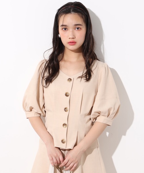 ~NICECLAUP 2020 Spring Collection~ ■レトロなブラウスが登場!! 麻の様な素材でできたブラウス。 フロントに大きめなボタンでレトロな雰囲気も楽しめます。 タックが入っているのでウエスト回りがスタイルアップして見えます! 袖はパフスリーブになっているので、二の腕カバーも◎ 同系色のショートパンツとセットアップ風に着て頂くのがオススメです。 他のパンツスタイルで合わせてもカジュアルすぎなく◎ タイトスカートと合わせてもフェミニンな雰囲気が漂います。 ※サンプルでの撮影のため、実際のものと仕様や色が異なる場合があります。 ※室内、室外での撮影のため実際より明るく映っていたり、暗く映っていたりする場合がございます。 ※品質表示を必ずご確認下さい。