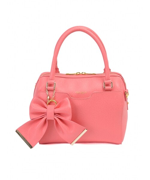 トレンドの四角いフォルムが目を引くミニボストン。チャームのリボンを外せばシャープなスタイルにも合わせられる、マルチユースなデザインです。