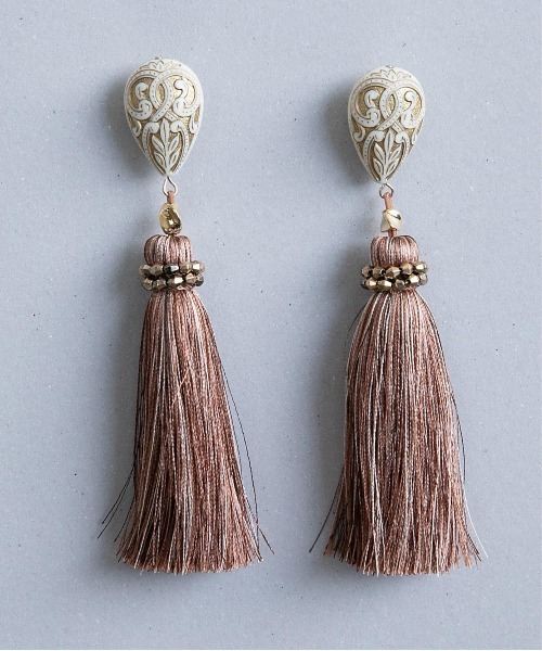 ヴィンテージ調のドイツ製ビーズを使用したタッセルピアス / イヤリング。 ほんのり光沢のある3色の糸をMIXしているので、表情豊かな風合いを楽しめます。存在感のある大ぶりデザイン×曖昧なカラーが大人コーデに映えるアイテム。デイリー使いにはもちろん、結婚式やパーティーシーンにも◎アイボリー・・・ピアスブラウン・・・ピアスカーキ・・・ピアスA・・・イヤリング(アイボリー)B・・・イヤリング(ブラウン)C・・・イヤリング(カーキ)■ ピアス ■*キャッチとポスト(軸)部分にはアレルギーにも配慮したシルバー925を使用。ノンニッケル(ニッケルフリー)仕立てです。*上質なシルバー925を使用しているため、素材は柔らかいので、お取り扱いにはお気を付けくださいませ。(もしご納品時にポスト部分が少し曲がっているようでしたら、少し力を入れていただければ元に戻すことが可能です。)■ イヤリング ■*イヤリング部分の金具には良質な真鍮素材を採用。アレルギーにも配慮したノンニッケル(ニッケルフリー)仕立てです。【BOEMY】(ボエミー) 2020SSスタート自由きままを意味するBoheme+Myの造語。◆ ブランドコンセプト ◆「自由な自分スタイル」自分のスタイルを大切にしている大人の方へ日常をより美しく、楽しくさせてくれる商品をお届け◆ テーマ ◆Vintage mood,Mode mix…*撮影環境によりスマートフォン、パソコンなどの画面上と実物では多少色味が異なることがございます。*商品の特性上、色や形に多少の個体差がございますので予めご了承ください。*アクセサリーは壊れやすいものです。取扱いにご注意ください。▼ 商品お気に入り登録 ▼右のハートをクリックすると、お気に入り登録アイテムの再入荷・在庫ラスト1点等の通知を受け取れます。フリンジ/フリンジピアス/フリンジイヤリング/ミックス/大ぶり/ヨーロピアン/結婚式/二次会/フォーマル/オケージョン/