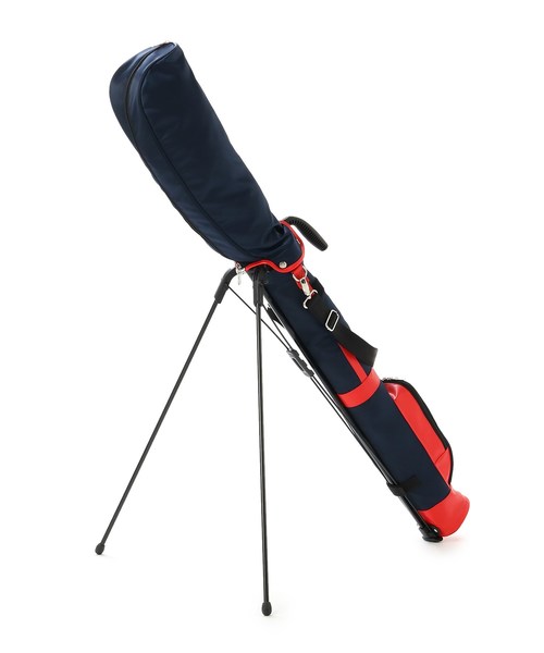赤いパイピングがアクセントカラーになったネイビーのスタンドクラブケースです。 数本のクラブを持ち歩くのにとても便利です。クラブ選択で悩む時間が少なくなったり、グリーンまわりへの忘れ物が少なくなったりと、プレーファーストにも貢献するアイテムです。 手持ちハンドル、ショルダーベルト、2脚スタンドが付いているので持ち歩きや立てかけなど様々な使い方ができます。 フードカバーとショルダーベルト付きなので、練習用バッグとしても使用可能です。 ※この商品はサンプルを使用して撮影しております。デザインや配色などが実際の商品とは一部異なる場合がございますのでご了承ください。 店舗へのお問い合わせ商品番号:098-01100 ●製品寸法: 00(FREE):高さ85cm 幅13cm マチ10.5cm 持ち手上がり4cm スタンド使用時高さ59~107.5cm 付属ショルダー対応サイズ75cm 付属ヘッドカバーH53cm 付属ヘッドカバーW17cm 付属ヘッドカバーD14cm 備考:重量:約1255g