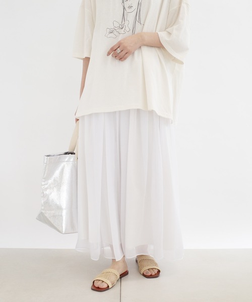 \シアー感がトレンド!ギャザースカート/たっぷりとギャザーを寄せふんわりと広がる、ボリューム感のあるスカート。やわらかい素材を使用し、今シーズンらしいやや透け感のある素材が春夏に良く似合います。ウエストはゴム仕様で着脱しやすく、裏地があるので明るいカラーリングでも透ける心配がないのも嬉しいポイント◎**********************・細かなギャザーとふんわり程よいボリューム感が特徴・ウエストゴム仕様で、軽い素材がストレスフリー♪・ロング丈で、気になる下半身もさり気なくカバー◎**********************
