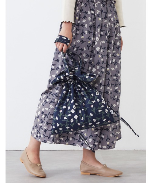 お洋服とおそろいのフラワープリントの巾着バッグ。お出かけにちょうどいいサイズ感です。 POU DOU DOU プードゥドゥ ひと手間加えた存在感のある「日常着」 いつまでもときめきとかわいいを忘れない方への 愛着を持てるワードローブ