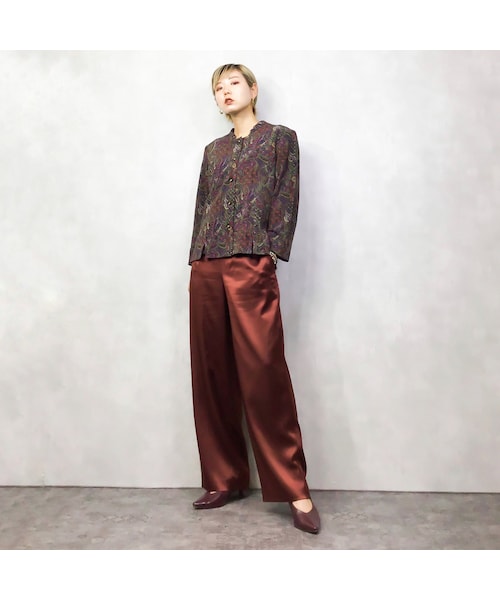 【商品番号PR-03-OH-998-Kj】 【着用モデル情報】ambi 身長160cm 普段の着用サイズトップスM ボトムスS ウエスト61.3cm ヒップ83.2cm 肩幅36.7cm(肩から手首まで)腕の長さ 52.9cm 股下75cm 【レビュー】 個性的な柄と配色がシックでインパクト大のレトロジャケット。 ちりめん生地のようなサラッとした柔らかい肌触りで着心地が良かったです。 桜模様のボタンが和な印象を与えます◎ 私の体型(ambi)で程よくゆとりのあるサイズ感で楽な着心地でした。 今回はレッド系のパンツと合わせてシックにスタイリングしましたが、パープルやブラックボトムスと合わせても素敵だと思います。 (ジャケット以外はモデルの私物です) 【商品詳細】 ■表記 日本製 ■素材 写真をご覧下さい ■カラー マルチカラー ■裏地 あり ■付属品 なし ■その他 前ボタン5つ、前スリット2ヶ所5.5cm、ポケットなし ■平置き採寸 ⚫︎着丈 56 cm ⚫︎身幅 52cm ⚫︎肩幅 39 cm ⚫︎袖丈 49cm ※多少の誤差はご了承下さい。 【コンディション】 【B】 (写真をご確認下さい) ※ランク分け表記の詳細は下記の【商品のコンディションについて】をご確認ください ※ご購入前に必ずトップページのREAD ME⚠️【配送日・送料・返品・決済方法について】をご確認ください。 【写真について】 画面上と実物では多少色味が異なって見える場合がございます。 着画画像よりも物撮画像の方が実物に近く撮影しておりますが、光の加減で実物通りには撮れない場合もございますので、色味や細かいコンディション等、気になる方はメールにてお問い合わせ後ご検討下さ い。 【返品について】 商品の返品は弊店の不備により、ご注文内容と異なる場合のみとさせていただきます。 その際は商品到着か5日以内にご連絡いただけますようお願い申し上げます。 上記の場合の返品送料などは弊店で負担するものとします。 商品の交換が不可能な場合には、返金にてご対応させていただきます。 中古衣料品の為、傷等経年の変化はご了承の上ご購入いただき、中古品、ヴィンテージ品ならではの味わいとして見ていただけますようお願い申し上げます。 その為、上記のような傷物等の返品はお受けしておりません。 出来るだけ状態のわかる写真を載せておりますが載せきれない部分もございます。 商品写真をご確認の上、気になる点はメールにて質問をお受けしておりますのでご購入前にご質問いただき、よくご検討くださいませ。 尚、お客様のご都合での返品、交換は恐れ入りますが致しかねます。 【商品のコンディションについて】 弊店では商品の状態(ダメージなど)によりランク分けを行い表記致しております。 ご購入前にランク表記も併せてご確認下さいます様お願い致します。 【 S 】新品もしくはタグ付きの未使用品と判断した商品 【 A 】数回使用した程度のきれいなUSED品 【 B 】使用感があまりなく、目立つダメージが少ないUSED品 【 C 】使用感はあるが、比較的ダメージが目立たないUSED品 【 D 】使用感があり、汚れなどのダメージが見られるUSED品 【 E 】かなりの使用感があり、破れやシミなどのダメージが目立つUSED品