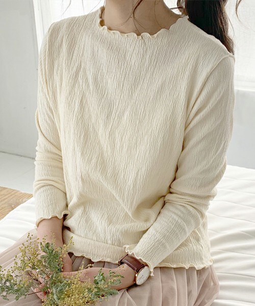 袖と首元のメロウデザインとバックのスリットがポイントになったトップス。 インナーにはもちろんこれからの時期は1枚でも大活躍◎ 合わせやすいモノトーンと春らしいカラーを揃えました◎