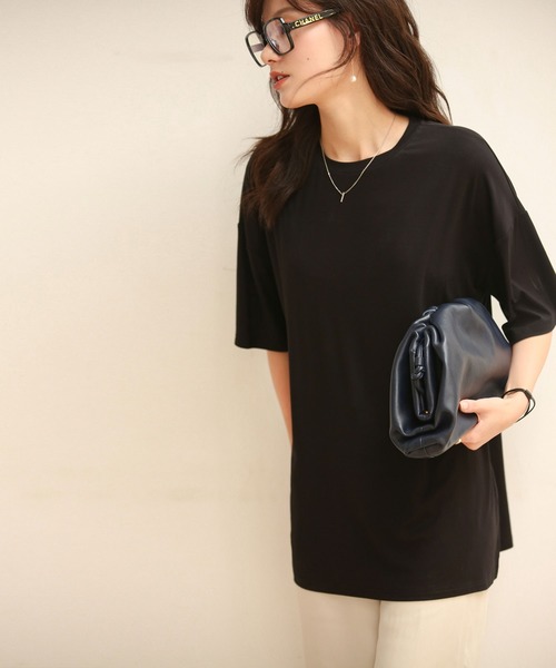 シンプルなシルエットでゆったり着られるTシャツカットソー。裾は左右にスリットの入ったデザインで、フロントをラフにインしてこなれ感をプラスできます。袖はゆったりとした5分丈のドロップショルダー。ワイドで四角いシルエットは伸縮性のある素材感と相まってストレスフリーの着心地に。主な素材として、吸湿性が高く、さらりとした着心地が特徴のレーヨンを使用。肌触りもひんやりとしているので、夏のカジュアルシーンにピッタリです。定番のモノクロカラーや、落ち着きがありつつも地味にならないアースカラーを多数ご用意。カラー・デザインともにボトムを選ばない万能感で、着回し力は抜群です。ストレッチ有りです。商品のお気に入り登録お気に入りの商品やサイズ・カラーまで、お気に入りの登録をしていただきますと、そのアイテムのセールの通知、ラスト1点になった時の通知や、完売しても再入荷通知を受け取ることができます!ブランドのお気に入り登録新商品の発売や再入荷、タイムセールやクーポン発行のお知らせなどSAISON DE PAPILLONがお届けするお得な情報を受け取ることができます!※通知はアプリでも受け取ることができますので、是非アプリの通知設定をお願い致します!商品の色味についてのご注意●ライティング等によりモデル着用画像と実際のお色味が異なる場合がございます。●お使いのモニターなどの環境によりお色の見え方に違いがある場合がございます。●素材によってサイズ感が若干異なる場合がございます。予めご了承ください。