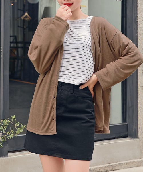 HOTで可愛いが盛沢山!HOTPING フロントボタンで脱ぎ着を楽にでき、 どこにでも気軽に着ていけるカーディガン。 流行に左右されないベーシックなデザインで所有価値の高いアイテムです。 リネン混紡素材で柔らかい着用感が自慢です。 ほのかな透け感と不規則な編み目が特徴のスラブ生地でスタイリッシュに着られます。 華奢に見せるシルエットなので、単独での着用も◎ ほどよい深さのVネックラインでセクシーなムードまで♥ フィット感:ルーズフィット 伸縮性:なし 厚み:薄手 裏地:なし 透け感:あり