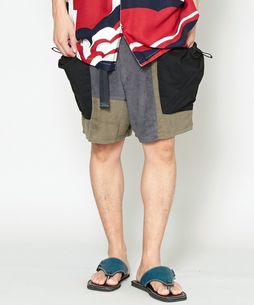 絶妙なバランスのパッチワークでシンプルながら個性的なデザインのメンズハーフパンツ。 柔らかなパイル生地と、しっかりとしたツイル生地の異素材を組み合わせた着心地抜群のアイテム。左右両サイドの大きめポケットがアクセントに。 どんなトップスとも合わせやすく、夏のカジュアルコーデやエスニックスタイルなど、様々なコーディネートにマッチします。 ※こちらの商品は1点1点職人による手作りとなります。その為、形や色合いなど若干異なる場合がございます。あらかじめご了承ください。 Amina Collection Co.,LTD.