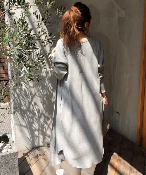 3wayの着方が楽しめちゃうサーマル素材のカディガンワンピースになります。 程よい厚みのサーマル素材を使用しカラーは合わせやすい2カラー展開でのご紹介!! 身体のラインを拾わないゆったりシルエットのロング丈で、ボタンを全て開けカーディガンのように羽織ってもok!! 留めてワンピースとしてもok!! 前後どちらのデザインでも着用できるのでその日の気分でコーディネートを楽しんで下さい。 ボタンは、シェルボタンを使用しておりプラスチックとは違った上品な印象に仕上がっている一着です。