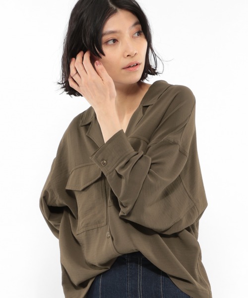 ゆったりとしたボディとアームで、リラックスした雰囲気のBIGシャツ。 顔周りがキレイに見える開襟で、ほどよい抜け感をプラスしました。 【素材】 程よいハリ感が特徴のポリエステル100%。 ややシャリっとした素材感で、ランダムに入ったシボが雰囲気のある仕上がりに。 【スタイリング】 インナーにTシャツやタンクトップを合わせて、ラフで抜け感のある着こなしが◎ カジュアルスタイリングがオススメです。