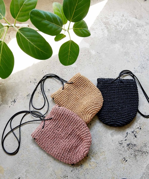 夏にぴったりの爽やかな風合いのペーパー素材を使用した巾着かごバッグ。間口は巾着タイプで中が見えてしまう心配も無く、可愛らしくも機能面に優れたデザインです。【素材・サイズ感】柔らかく扱いやすいペーパー素材。フェイクレザーのコードは汗や汚れに強くデイリーに使いやすいのも嬉しいポイント。サイズも収納量も程よく、大人女子のサマーバッグにオススメです。 内側ポケット:1