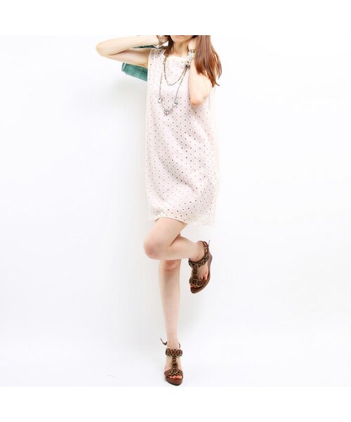 トレンド満載のパンチングをレースに取り入れたスタイリッシュなワンピースです。レースの間からのぞくインナーカラーでレイヤードがお楽しみ頂けます。セットインナーと形を変えた、ボートネックのレースが涼しげなネックラインを演出。肌触りの柔らかなコットン素材にレースを重ねて大人可愛い印象に。ゆったりとしつつもスッキリとしたIラインが程よくフェミニンさを際立たせています。