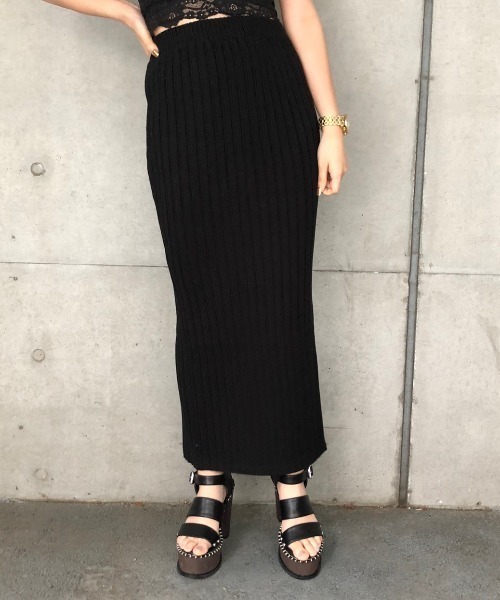 ワイドなリブ編みでメリハリよく着こなせる、ボディコンシャスな美人スカート。 落ち着いた印象を与えてくれるロングシルエットに、歩くたびにレッグラインが覗き、Sexyなワナを仕掛ける、深スリット入りのデザインも注目ポイント!