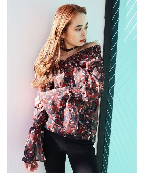 ◆春気分を盛り上げるシフォンをトップス◆人気のシフォン素材のブラウスです。胸元のフリルデザインと袖のフレアスリーブが女性らしいアイテムです。肩を落として、オフショルダーでの着用も可能〇花柄はEMODAオリジナル柄です。※画像の商品はサンプルです。実際の商品と色味、仕様、加工、サイズ、素材等が若干異なる場合がございます。----------------透け感:あり生地の厚さ:薄手裏地:なし伸縮性:なし----------------