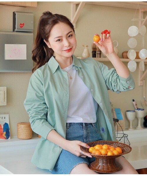 カラーネックラインで端正な雰囲気を演出し、フロントボタンで脱ぎ着もラクちん♪余裕のある袖ライン&シルエットで体型をカバーし、コットン100%素材で快適な着用感を与えます。ラウンド型の裾デザインでおしゃれなポイントをプラス!ミント、ホワイト、イエローの3カラー展開です。