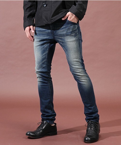 足まわりにぴったりとフィットするスキニージーンズ。12.5オンスの弱ストレッチ素材を使用し、柔らかい穿き心地を追求しています。リベット等の付属パーツをブラックで統一し、ステッチは同系色で合わせてシャープな印象を出しました。 model:H180 B86 W70 H86 着用サイズ:MEDIUM