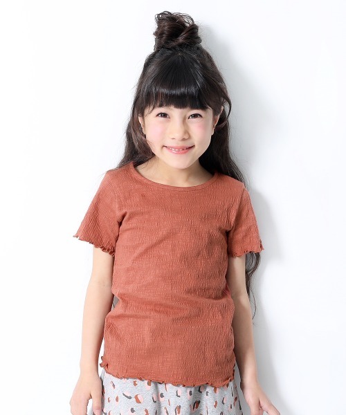 上品な生地の風合いがポイントの『クレープTシャツ』 袖口や裾を軽さのあるメロウ仕上げにすることで、ガーリーに仕上がりました。カジュアルからキレイ目スタイルまで、着回し力抜群な1枚です。■素材■やわらかな感触と伸縮性のあるクレープ天竺独特の凹凸感があり肌あたりの優しいクレープ天竺。ほどよい透け感で涼しげな印象です。■ディティール■伸縮性:あり・袖口と裾はフリルのようなメロウ仕上げがアクセントに ・裏側にお名前タグ付き