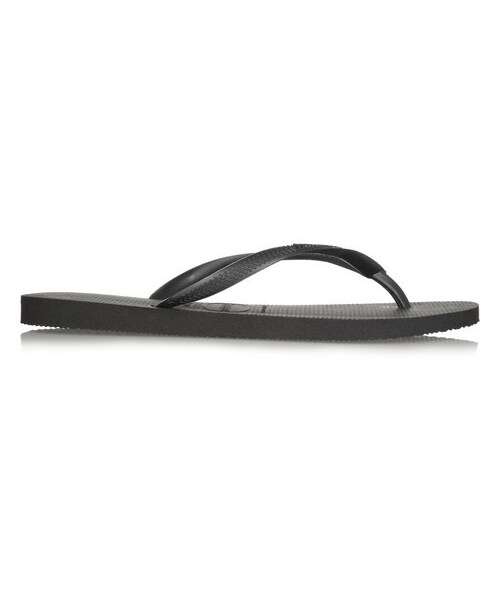 Sole measures approximately 10mm/ 0.5 inches. Originally inspired by Japanese 'Zōri' sandals, Brazilian label Havaianas' rubber flip flops have become an iconic style. This black pair is designed with slim thong straps and the label's signature comfortable aerated sole. Sole measures approximately 10mm/ 0.5 inches Black rubber Toe post, open almond toe Slip on