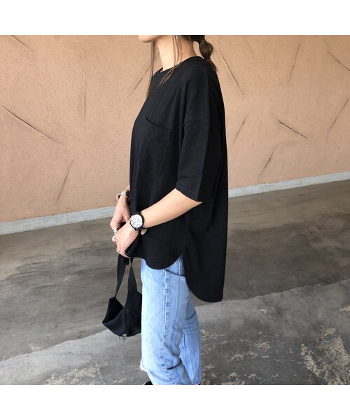綿麻素材のさらりとした生地を使用した、USED風ポケット付きラウンドヘム半袖Tシャツです。 キュートなラウンドした裾とさりげないポケットがアクセント! ルーズシルエットでさらっと着れ、気になる体型も上手にカバー◎ カットソーの下に着てたレイヤードスタイルやロングスカートやスキニーとはもちろん相性抜群のデイリーアイテムです。 ※モデル身長:161㎝ ◆サイズ 着丈(前)63㎝ 着丈(後)73㎝ 身幅62㎝ 肩幅59㎝ 袖丈20㎝ 袖口幅17㎝ ※採寸は平置きにして測っております。多少の誤差は予めご了承ください。 ◆素材 綿70% 麻30% ◆生地の特性について 麻混率ですので、生地の特性上絡み合ってできた糸の節が生地表面上に出たものを「ネップ」といいます。淡色生地に混ざると目立ちますが生地の特性になります。ネップや繊維の出方には1つ1つ違いますがリネン生地の素朴な味となっております。生地の特性ですの不良品ではございませんのでご理解の上ご購入下さい。