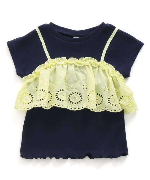 apres les cours(アプレレクール)の半袖Tシャツ「レースビスチェTシャツ」は、鮮やかな色使いとトレンドを取り入れたデザインが人気! ※正規の下げ札(タグ)が付いていない商品や、商品を梱包している資材(箱・袋等)が劣化している場合もございますが商品自体に問題はございません。下げ札や梱包資材(箱・袋等)の状態が理由での不良対応はお受け出来ません。