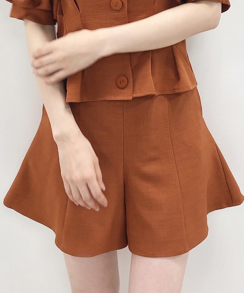~NICECLAUP 2020 Spring Collection~ ■フレアデザインのショートパンツが登場!! 美脚効果のあるフレアシルエットでよりフェミニンさがアップ。 サイドファスナーなので着脱もしやすい仕様。 ウエスト後ろがゴムになった履き心地が◎ ウエスト回りの華奢なリボンベルトでフェミニンな雰囲気も漂います。 同系色のブラウスとセットアップ風に着ていただくのがオススメ!! SWEET派の方には他のブラウスやレーストップス合わせも◎ もちろんゆるTシャツやロゴトップスとの相性も抜群です。 ※サンプルでの撮影のため、実際のものと仕様や色が異なる場合があります。 ※室内、室外での撮影のため実際より明るく映っていたり、暗く映っていたりする場合がございます。 ※品質表示を必ずご確認下さい。