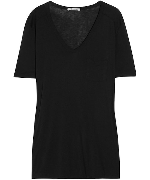 Black jersey Front patch pocket Slips on 100% rayon Hand wash