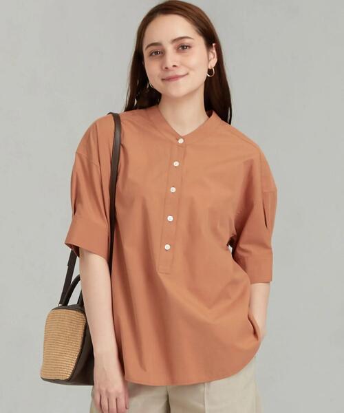 さらりとしたタッチと軽い着心地が◎定番人気素材に新作ブラウスが登場です!すっきりとしたネック周りが涼しげなバンドカラーのコットンシャツ。 ハーフスリーブの袖丈は、カフスで上品に仕上げつつも、タックで程よいボリュームをプラスし一枚でしっかり映えるシルエットに仕上げました。着回しに便利な無地に夏らしいブルーカラーのストライプ、ブラウンベースの今年らしいチェックをご用意しました。大人なフェミニンスタイルが完成するおすすめトップスです。こちらは同デザインで素材違い(品番:3616-105-0861)もございます。※※カラー名と画像が正しく表示されていない可能性がございます。 ※※正しくは、以下の通りです。WHITE:ホワイト無地MD.BROWN:ブラウン無地MOCA:モカチェックCOBALT:コバルトストライプカラー名と画像が違う場合、選択していただいたカラー名に基づき、上記カラー・柄の商品を発送させて頂きます。本体:手洗い可※袖まわりの採寸箇所は、二の腕部分を直角にぐるりと採寸した数値となります。※画像の商品はサンプルです。実際の商品と仕様、加工、サイズが若干異なる場合がございます。※撮影時の照明の関係により、実際よりもやや明るく見える場合がございます。お色味に関しましてはご詳細画像にてご確認ください。またパソコンなどの環境により、製品と画像のカラーが若干異なる場合もございます。予めご了承ください。店舗へお問い合わせの際は、全国のgreen label relaxing各店舗まで下記の品名/品番をお申し付け下さい。品名:FFC 50/-ブロードスタンドカラ-BL 品番:3616-105-1620============================【STAFF RECOMMEND】Recommended byルロウ 八重洲店 米島香織(身長162cm) ◆着用サイズ:FREE◆二の腕も隠れるハーフスリーブが嬉しいポイントでした。着丈も長めでお尻がすっぽり隠れるのでボトムスも選ばず合わせられました。============================