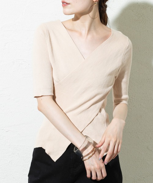 華奢見えの叶う優秀アイテム!! 商品ポイント ・クロスに入ったデザインがボディラインを引き締め華奢見えに!! ・Vネックで顔周りもすっきりとした印象で着て頂けます。 ・シンプルなデザインで日常使いからオケージョン使いまで幅広く活躍間違いなしのトップスです。 ・前後両前で使用して頂ける2WAY使用で着回し力も抜群。 スタイリングポイント ・すっきりとした印象のトップスなのでフレアデザインやボリュームのあるボトムを合わせてもバランスよく着て頂けます。 ・身体にフィットするタイトなデザインなのでインナーとしても◎ 透け感:なし 裏地:なし 伸縮性:あり 光沢感:なし 生地の厚さ:ふつう ※お取り扱い上のご注意 (ニット製品) 洗濯はドライクリーニングをおすすめしますが、手洗いの際は次の点にご注意ください。 ・洗濯液は30℃のぬるま湯で、中性洗剤を十分にとかしてから洗ってください。 ・洗濯物は裏返しにして折りたたみ、片側をそれぞれ20回程度押し洗いしてください。 ・絞りは、遠心脱水機で1分程度。 ・洗濯後は、形を整え日陰で平干しにしてください。 ・アイロンは、あて布の上から中温で。 ・乾燥機のご使用は、避けてください。 ※お取り扱い上のご注意 (ピリング) ・ピリングとは繊維の表面が着用中にこすられたり、もまれたりするため、毛羽の小さなもつれが絡み合い、 次第に大きくなってできた毛玉のことです。 これは、素材の特性上着用の際避けられない現象で、その発生を完全に防止することは出来ません。 ・ピリングにはお手入れが肝心です。気にいっているからといって、毎日同じ商品をお手入れなしで着続けますと、 必ずピリングは出来やすくなります。1日着用したら2日休ませるなどローテーションを考えて着用して下さい。 ピリングが出来ましたら引っ張って取ろうとせず、ブラッシングするか、小さなはさみで1つ1つ取り除いて下さい。 商品のお気に入り登録➡ お気に入りアイテムの値下げ・再入荷・在庫1点などの通知を受け取ることができます。 ブランドのお気に入り登録➡ 新商品や再入荷、セール、クーポン配布などお得な情報を受け取ることができます。 ※サイト上のカラー名と、お届け商品に記載されているカラー名が異なる場合がございます。 ※商品の色味は、撮影場所や光のあたり具合などにより色味が違って見える場合が御座います 。 また、お客様のお使いのPCのモニター環境などにより色味が違って見える場合が御座います。予めご了承の上ご注文下さい。 ※ご注文いただいた予約商品のお届け時期の確認は、注文履歴ページより行えます。