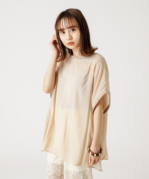 今注目のシアー布帛T!!商品ポイント・布帛のシアー素材を使った遊び心のあるTシャツです!・スタイリングに取り入れるだけでこなれ感を出してくれるアイテム・シアー素材ならではのレイヤードコーデにもオススメ!!・首元とアームのリブデザインもコーディネートのポイントに スタイリングポイント・今季トレンドのカラーパンツや柄デザインのボトムにアウトスタイルで合わせるのがオススメ。・ワンピースのインナーとして取り入れるだけでいっそうこなれ感を演出します。・すっきりとした印象のボトムと合わせるとバランスを取りやすいです!透け感:あり裏地:なし伸縮性:なし光沢感:ややあり生地の厚さ:うすい商品のお気に入り登録➡ お気に入りアイテムの値下げ・再入荷・在庫1点などの通知を受け取ることができます。ブランドのお気に入り登録➡ 新商品や再入荷、セール、クーポン配布などお得な情報を受け取ることができます。※サイト上のカラー名と、お届け商品に記載されているカラー名が異なる場合がございます。※商品の色味は、撮影場所や光のあたり具合などにより色味が違って見える場合が御座います 。また、お客様のお使いのPCのモニター環境などにより色味が違って見える場合が御座います。予めご了承の上ご注文下さい。※ご注文いただいた予約商品のお届け時期の確認は、注文履歴ページより行えます