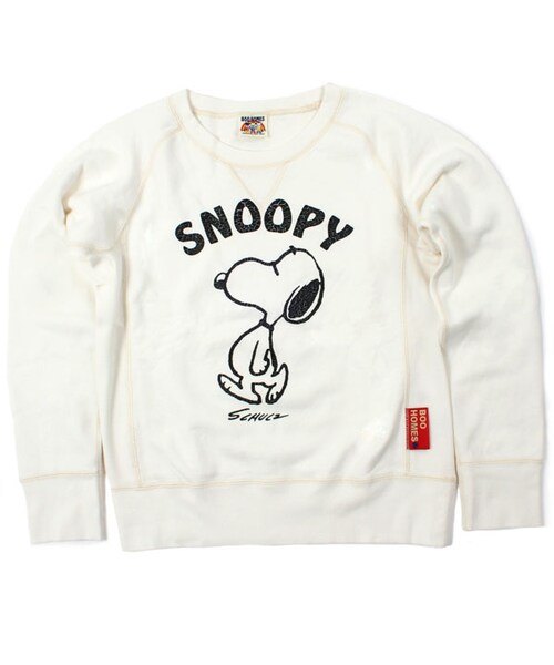 現在も世界中の人々に愛され続けている「PEANUTS」のヴィンテージ風トレーナーが登場です!チャーリー・ブラウンと飼い犬のスヌーピーを中心としたキャラクター達の一コマが1950年代初期のクラシカルなタッチで描かれているよ。後に付いているタグにはコミックがプリントされています!デイリーに使えるアイテムなので1枚は絶対におさえておきたい!これからの季節に大活躍間違いナシです!