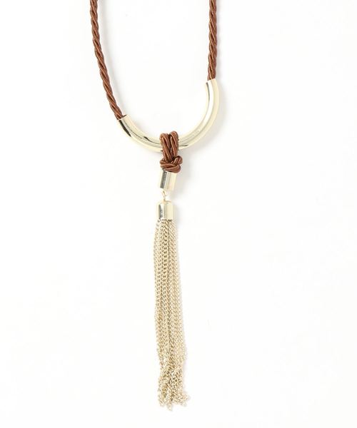 揺れるチェーンタッセルが周りの視線を集めるネックレス。 ロープの異素材使いがモダンな表情をプラスするアクセントポイント。アジャスターでサイズ調整も可能です。 シンプルながらも存在感を放つデザインで、カジュアルからエレガントなスタイリングまで、様々なコーディネートにマッチしてくれます。